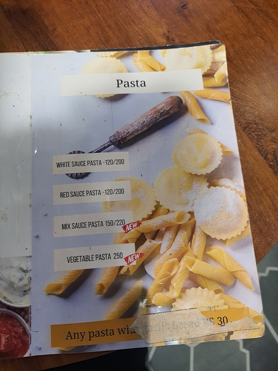 This menu is well-suited for quick orders, casual dining, or coffee breaks, offering a combination of grilled sandwiches, pasta, cold beverages, and shakes. The range of options caters to different preferences and mealtime needs throughout the day.